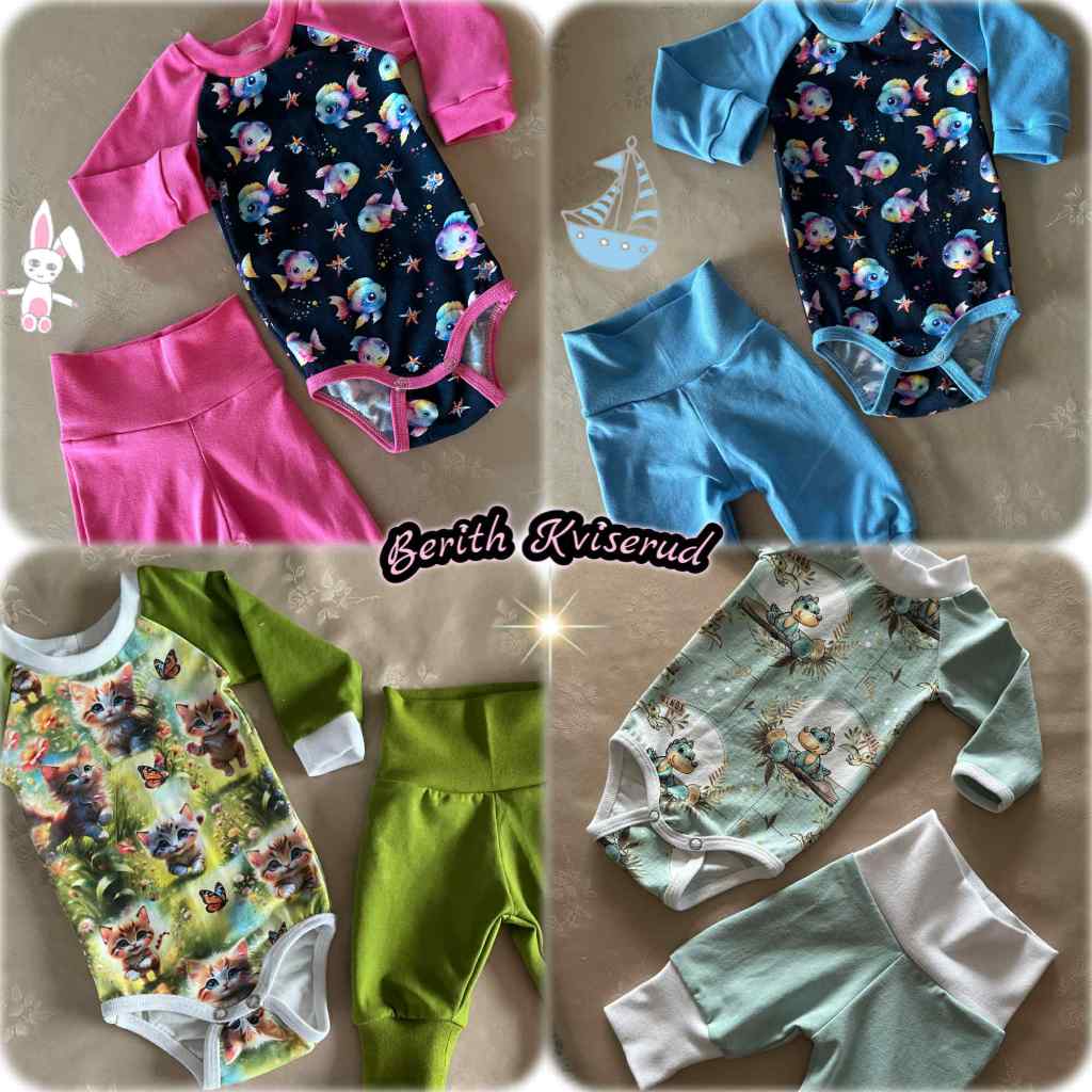 Strikker og syr klær til nyfødt